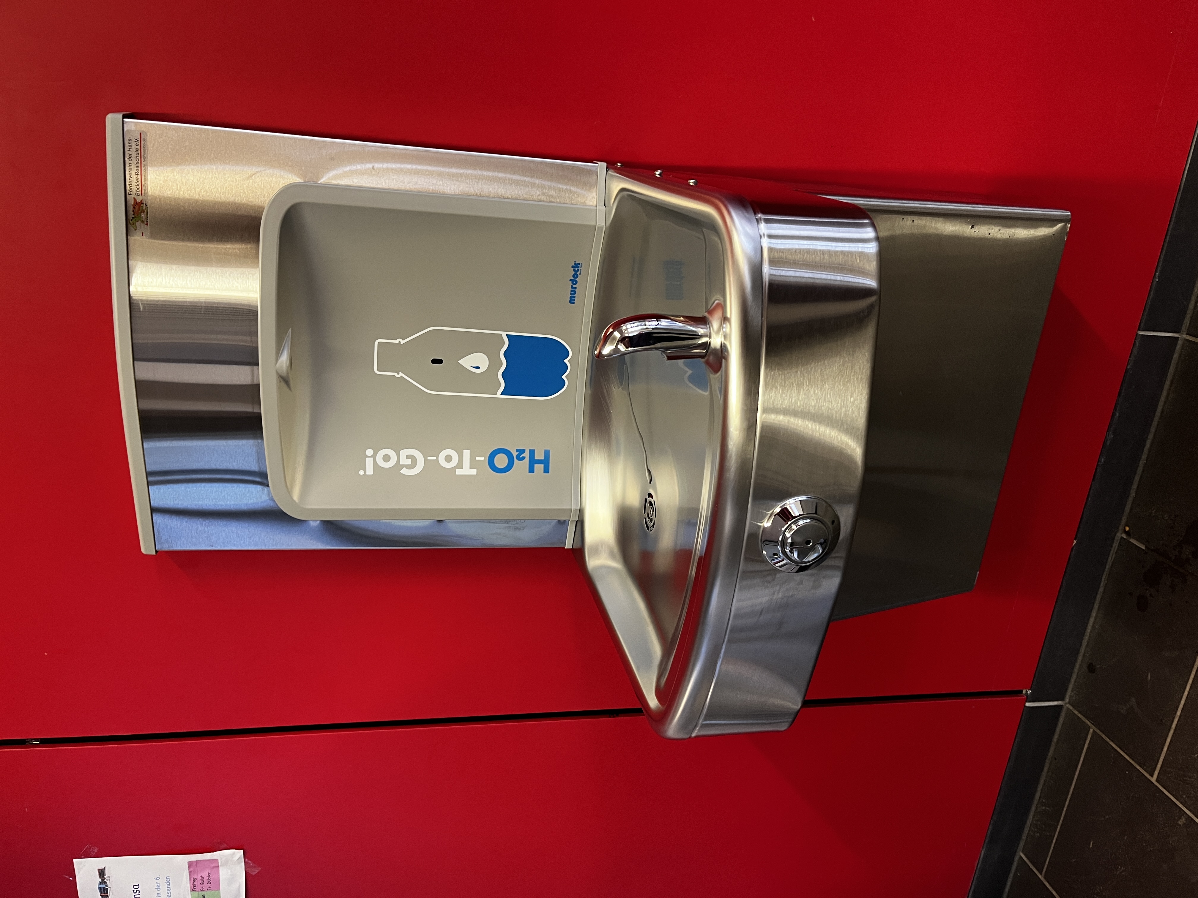 In der Cafeteria konnten wir in den Sommerferien 2025 einen Indoor-Trinkwasserbrunnen installieren. Hier gibt es jetzt jederzeit frisches, gekühltes Wasser.